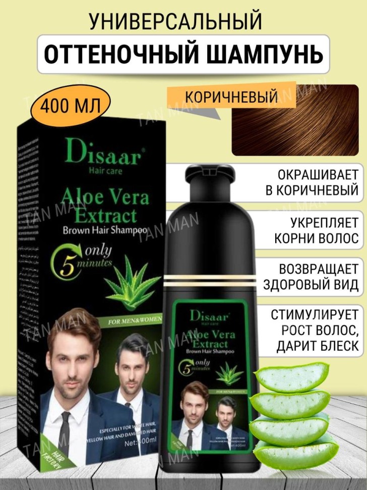 Шампунь Оттеночный ALOE VERA для Мужчин и Женщин КОРИЧНЕВЫЙ (Brown) 400мл (DS-5722)