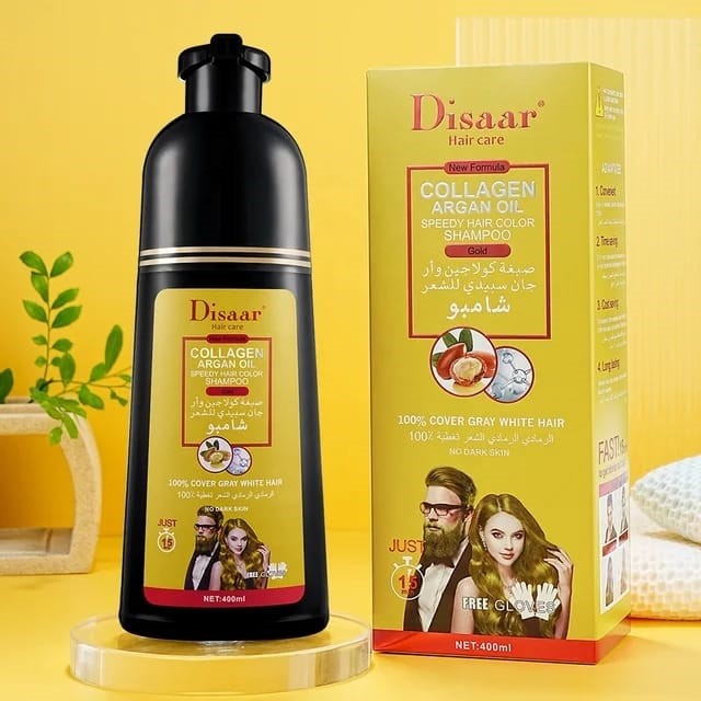 DISAAR Шампунь Оттеночный COLLAGEN Argan Oil Закрашивающий седину ЗОЛОТИСТЫЙ (Gold) 400мл (DS-5103)