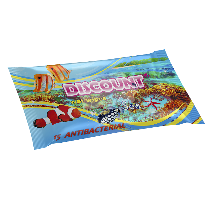DISCOUNT Влажные салфетки (15шт) Breeze (Морская свежесть) Antibacterial п/п. 132