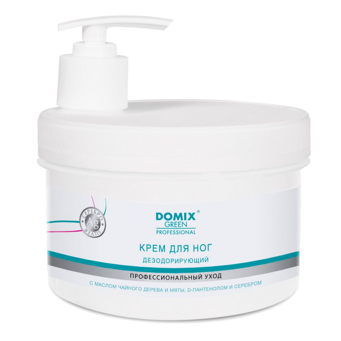 Domix Green Professional Крем для ног дезодорирующий с серебром и маслом чайного дерева, 500 мл