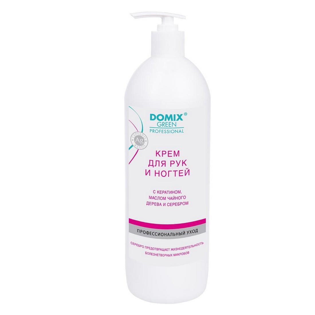Domix Green Professional Крем для рук и ногтей с кератином, маслом чайного дерева и коллоидным серебром, 1000 мл