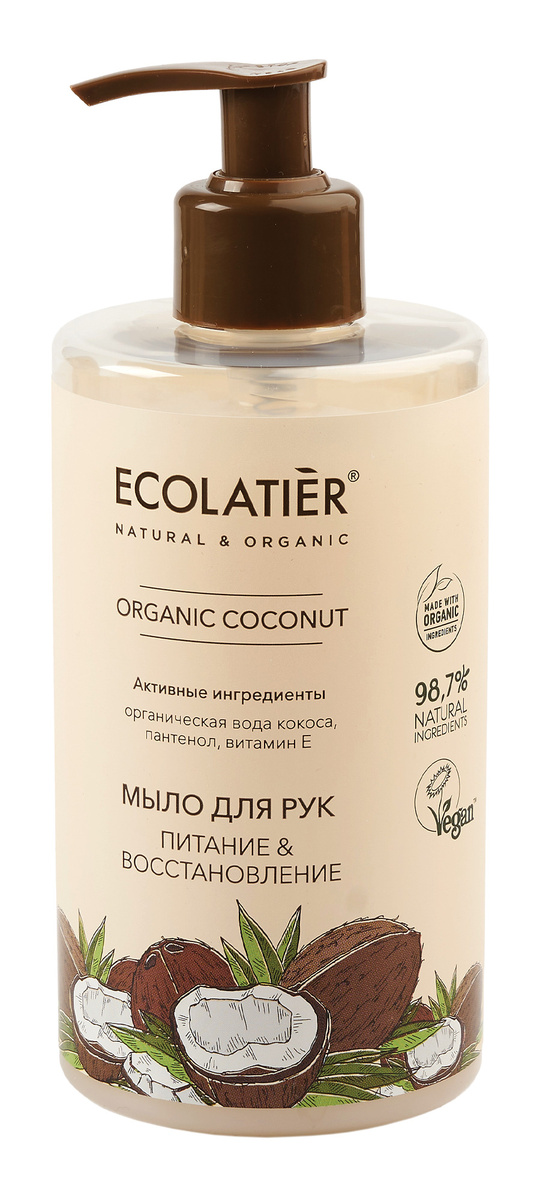 Мыло для рук ECOLATIER® Organic Coconut с натуральными экстрактами и маслами в составе нежно очищает, смягчает и питает кожу рук, защищает от сухости. Соответствует требованиям Vegan Society (Великобритания).