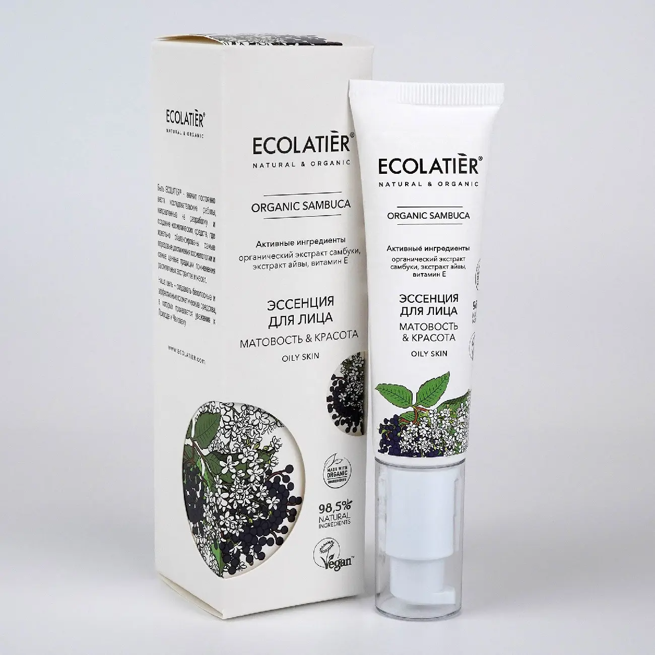 Матирующая эссенция для лица ECOLATIER® Organic Sambuca создана на основе натуральных ингредиентов, необходимых для увлажнения и питания нормальной и склонной к жирности кожи. Легкая, насыщенная формула впитывается без липкого эффекта, не закупоривает поры, уменьшает жирный блеск кожи. Усиливает естественные защитные функции кожи, придает ей гладкость, свежесть и здоровый вид.