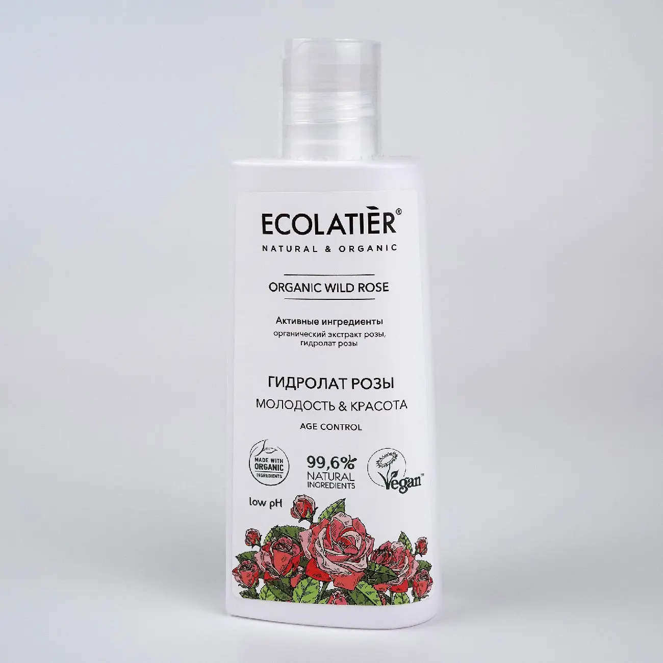 Органические ингредиенты: Органический экстракт розы содержит более трехсот активных ингредиентов, что делает его незаменимым компонентом антивозрастных средств. Стимулирует естественные процессы обновления, эффективно разглаживает, восстанавливает кожу, придает ей здоровый и свежий вид. Активные ингредиенты: Гидролат розы (цветочная вода) обладает успокаивающими, противовоспалительными свойствами, улучшает цвет лица, омолаживает, придает коже