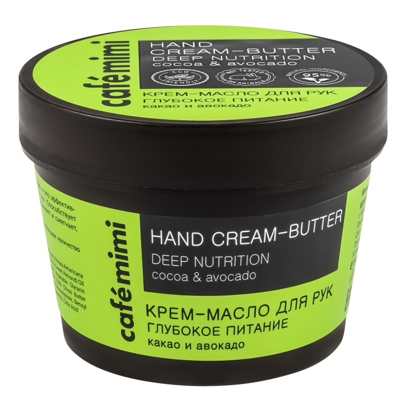 Крем-масло для рук Глубокое питание Какао и авокадо поддерживает тургор и восстанавливает гидролипидный баланс кожи, делает кожу нежной, эластичной и защищенной от внешних агрессивных факторов. Обеспечивает отличное увлажнение и питание кожи, повышает эластичность, возвращает ей гладкость и упругость.