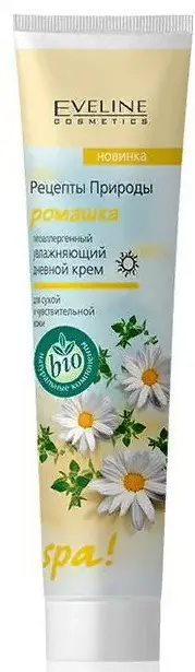 Этот крем с увлажняющим эффектом предназначен специально для раздраженной кожи сухого и чувствительного типа. Созданный на основе новаторских достижений косметологии, он обеспечивает высокопрофессиональный уход в течение всего дня, возвращая коже максимальный комфорт и здоровый вид. Секрет высокой эффективности гипоаллергенной формулы - в уникальном сочетании лечебного ромашкового экстракта, гидрокомплекса NMF, витаминов Е и A, Н и F. Мощный состав позволяет средству серии Eveline Cosmetics Spa оказывать на кожный покров расслабляющее и успокаивающее воздействие, наделяет увлажняющими и питательными, антисептическими и противовоспалительными, смягчающими и регенерирующими свойствами. Также крем способен оберегать от пагубного влияния ультрафиолета и бороться со свободными радикалами. Результат регулярного использования средства - отдохнувшая свежая кожа без сухости и стянутости, шелушения и раздражения. Легкий крем с нежирной текстурой смягчает и витаминизирует кожный покров, поддерживает его барьерные функции и предупреждает появление ранних признаков старения.
