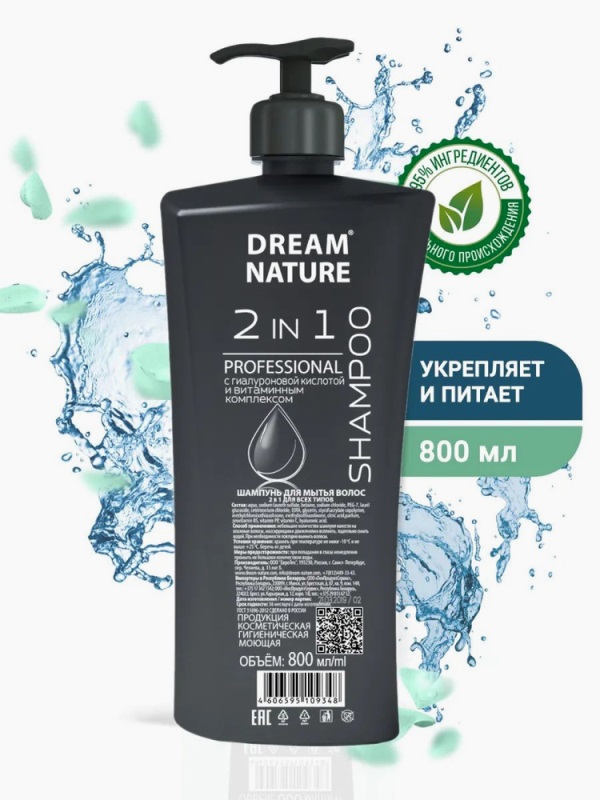 Состав: Аqua, sodiumlaurethsulfate, betaine, sodiumchloride, PEG-7, laurilglucoside, cetrimoniumchloride, EDTA, glycerin, styrol\acrylatecopolymer, methylchloroisothiazolinone, methylisothiazolinone, citricacid, parfum, provitamin B5, vitamin PP, vitamin С, hyaluronicacid.