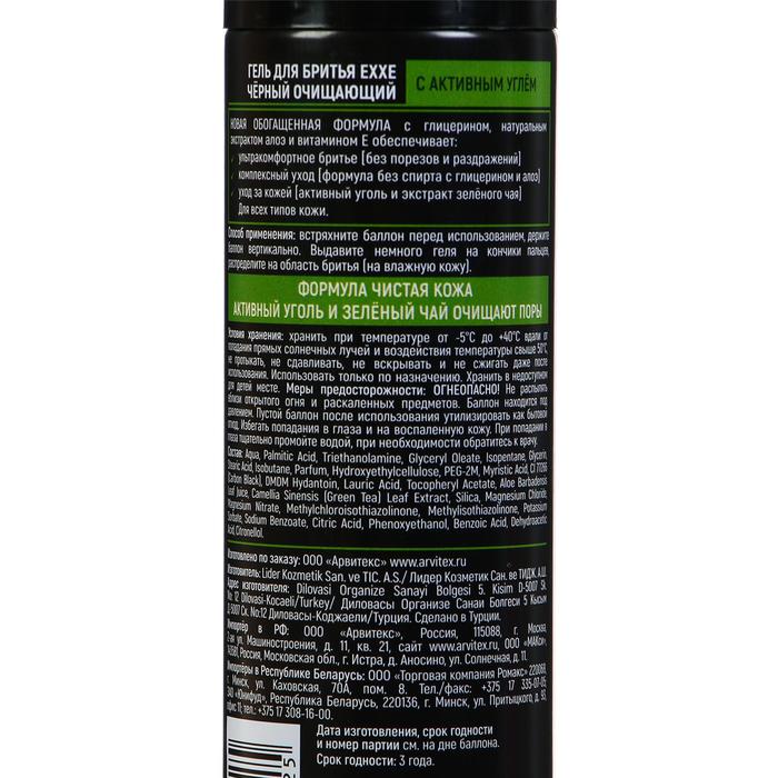 Гель для бритья Exxe «Активированный уголь» черный, для всех типов кожи, 200 мл