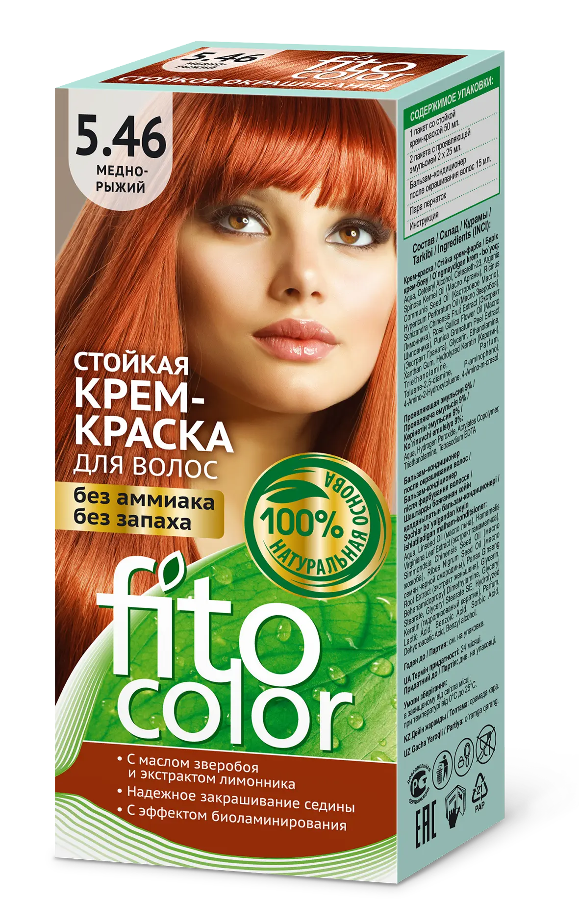 Стойкая крем-краска для волос FitoColor- природная красота для Ваших волос! Единственная крем-краска, разработанная на основе натуральных природных компонентов! Нежная кремовая текстура краски, обволакивая каждый волос, глубоко проникает в его структуру и окрашивает в сочные, объемные, яркие, цвета. Крем-краска идеально закрашивает седину! Входящие в состав натуральные масла и экстракты растений питают, укрепляют и восстанавливают локоны, придают им гладкость, эластичность и объем. Цвет - 5.46 Медно рыжий