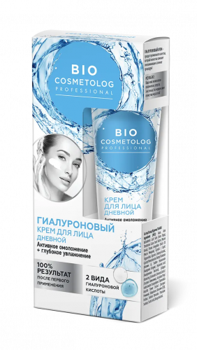 [TEXT]Крем для лица гиалуроновый дневной с эффектом профессиональной биоревитализации интенсивно подтягивает овал лица и моментально восстанавливает молодость кожи. Активная формула крема с 2 видами гиалуроновой кислоты, коэнзимом Q10 и коллагеном насыщает кожу влагой на всех уровнях, мгновенно разглаживает мимические и уменьшает глубокие морщинки, восстанавливает упругость и эластичность кожи. Алоэ вера, экстракты лимонника и ромашки дарят ровный тон кожи и здоровый цвет лица, натуральные масла какао и миндаля глубоко питают и смягчают кожу, витамин А обладает мощным омолаживающим эффектом. Ежедневное применение крема полностью заменяет профессиональную процедуру биоревитализации кожи.