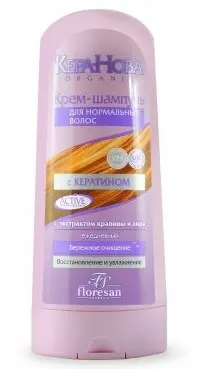 Средства для волос «Кера-Нова» - это линия высокоэффективных косметических продуктов, разработанных специалистами компании для комплексного ухода за волосами. Крем – шампунь с мягкой моющей основой эффективно и бережно очищает волосы, делая их более сильными, гладкими и прочными. Кератин, в комплексе с экстрактами крапивы и аира, укрепляет волосы, предотвращая их ломкость и стимулируя рост волос. Сбалансированный состав шампуня отлично поддерживает водно-жировой баланс кожи, поэтому Вы можете мыть голову так часто, как пожелаете.