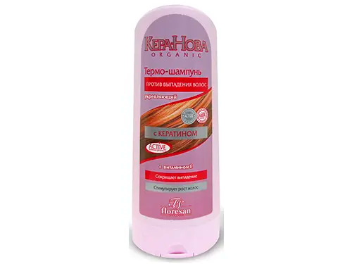 Средства для волос «Кера-Нова» - это линия высокоэффективных косметических продуктов, разработанных специалистами компании для комплексного ухода за волосами. Термо-шампунь безотказно работает для профилактики выпадения и усиления роста волос. Высокоэффективная формула с кератином и витаминным комплексом питает и укрепляют волосы от корней до кончиков. Экстракт перца улучшает кровообращение, создавая термо-эффект, стимулируя адресное проникновение активных добавок, питающих волосяные луковицы.
