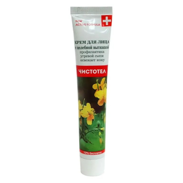 Натуральный экстракт чистотела оказывает смягчающее и успокаивающее действие. Крем подсушивает проблемную кожу, помогает устранить угревую сыпь на ранней стадии, предотвращая дальнейшее ее появление. Витамин Е и натуральные масла питают кожу лица и предупреждают нежелательную потерю влаги.