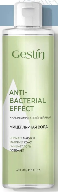 Мицеллярная вода GESLIN подходит для проблемной кожи, мягко и эффективно удаляет даже водостойкий макияж с лица, глаз и губ. Удаление макияжа всего одним движением, кожа становится чистой, гладкой и нежной. НИАЦИНАМИД способствует нормализации работы сальных желез, устранению акне и воспалений, выравнивает тон кожи. ЗЕЛЁНЫЙ ЧАЙ оказывает антиоксидантное действие и выводит токсины. Деликатная формула оказывает матирующее действие, идеальный уход для кожи. Средство не требует смывания, оптимально для ежедневного использования. Water (Aqua), Hydroxyethylurea, Glycerin, Cocamidopropyl Betaine, D-Panthenol, PEG-7 Glyceryl Cocoate, Coco-Glucoside, Aloe Barbadensis Leaf Juice, Zinc Sulfate, Niacinamide, Cucumis Sativus Fruit Extract, Camellia Sinensis (Green Tea) Leaf Extract, PEG - 40 Hydrogenated Castor Oil, Propylene Glycol, Disodium EDTA, Lactic Acid, Parfum (Fragrance), Phenoxyethanol, Ethylhexylglycerin.