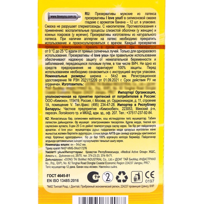 Презервативы I Love You с ароматом фруктов МИКС, 12 шт.