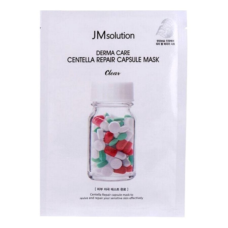 Успокаивающая целлюлозная маска с центеллой азиатской JM solution Derma Care Centella Repair Capsule Mask для проблемной и чувствительной кожи. Обладает антибактериальным и заживляющим действием, помогает в борьбе с акне и воспалениями, осветляет пост-акне и устраняет покраснения, ускоряет обновление клеток и увлажняет. Повышает защитные функции кожи, укрепляет гидролипидный барьер и предотвращает негативное воздействие внешних факторов. Улучшает проницаемость капилляров и укрепляет сосуды, обладает противокуперозным действием, снимает раздражения и зуд.