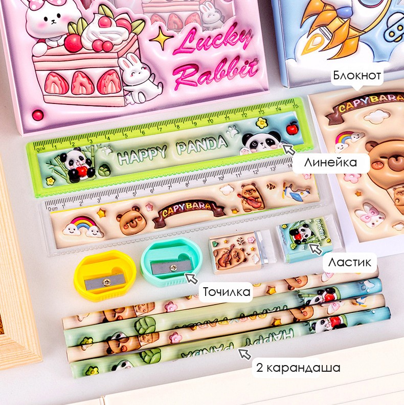 Подарочный детский канцелярский набор из 6 предметов - отличный подарок или сувенир для юных учеников.