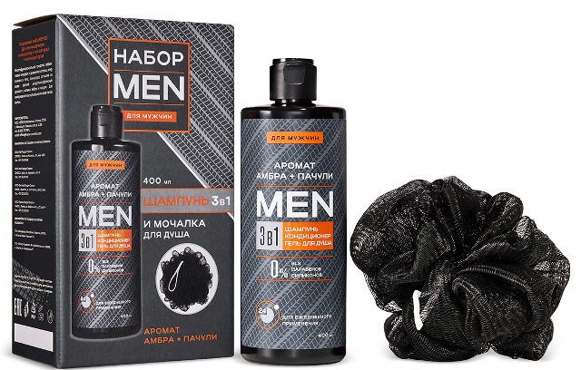 Ищете идеальный подарочный набор для мужчин? Или хотите побаловать себя? Сделайте стильный подарок с помощью нашего праздничного набора MEN. В наборе мочалка черного цвета и шампунь с формулой 3в1, который эффективно очищает и увлажняет волосы, кожу головы и тела, тонизирует, оставляя на коже легкий цитрусово-древесный аромат с нотами амбры и пачули.