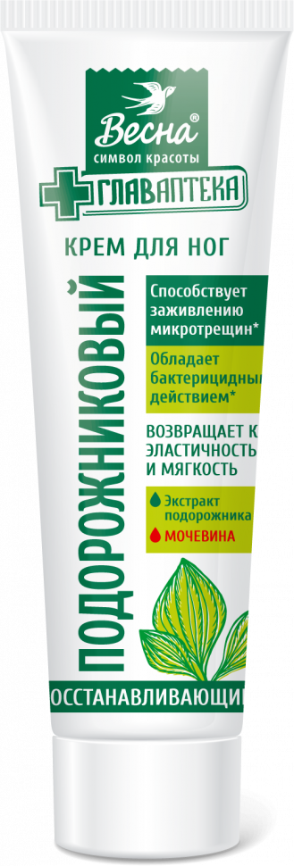 Возвращает коже эластичность и мягкость. Содержит экстракт подорожника, мочевину.