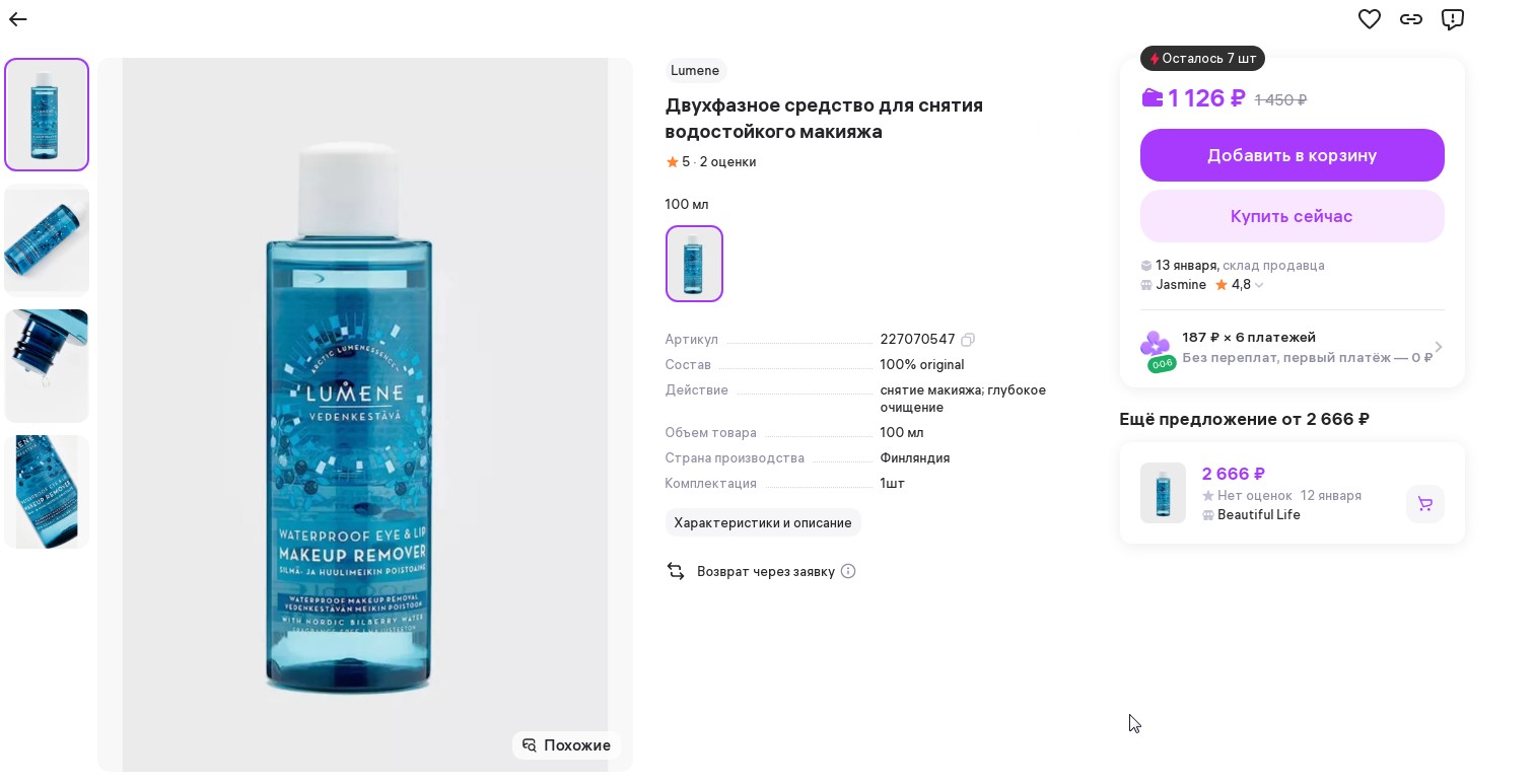 Отзывы и вопросы о товаре «LUMENE средство для снятия в\с макияжа 2х фазное 150мл»