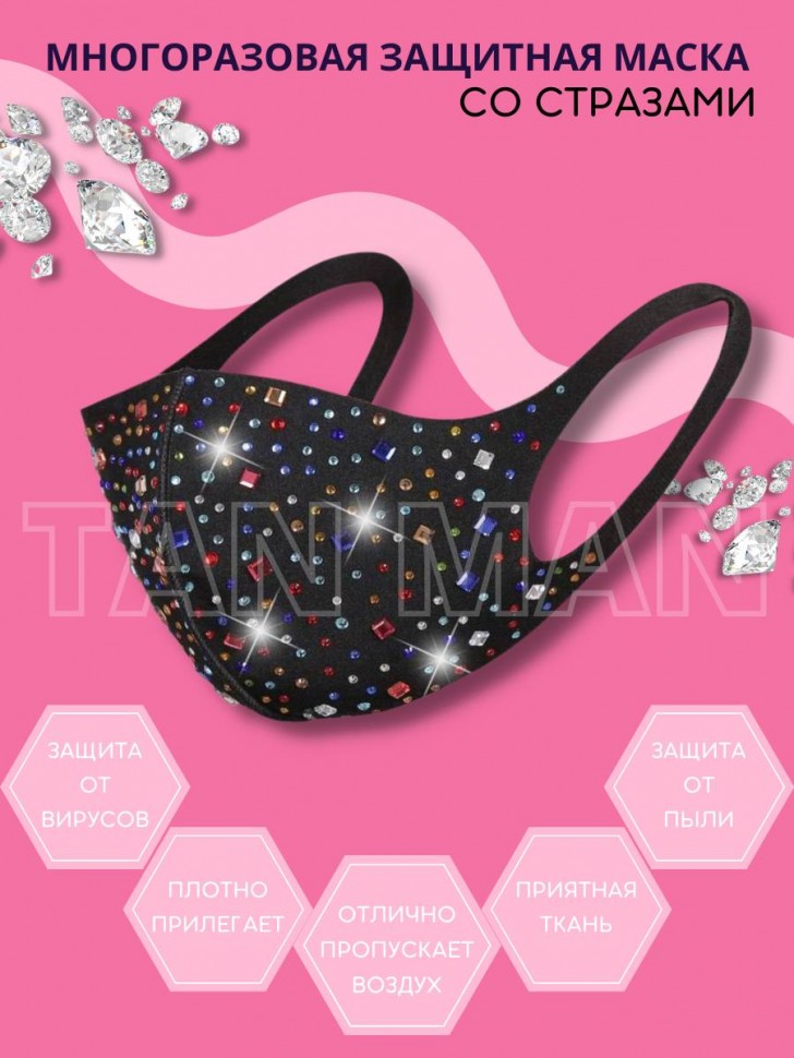 Маска защитная для лица Fashion Mask ЧЕРНАЯ Камушки Цветные многоразовая (ТВ-5)