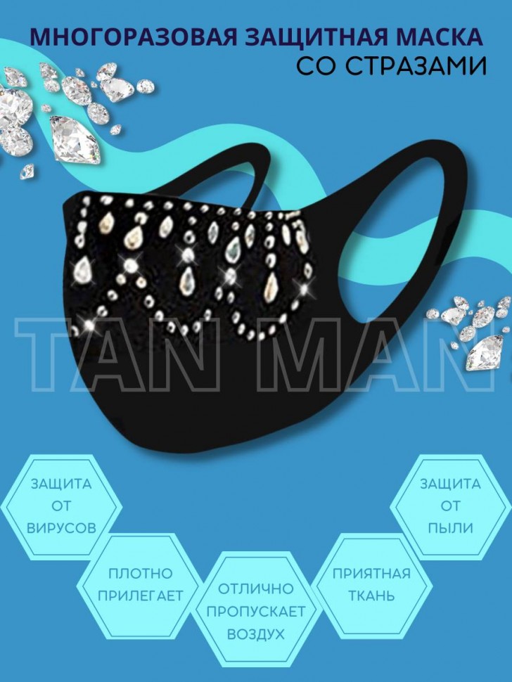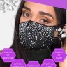 Маска защитная для лица Fashion Mask ЧЕРНАЯ Стразы и Камушки Цветные многоразовая (ТВ-6)