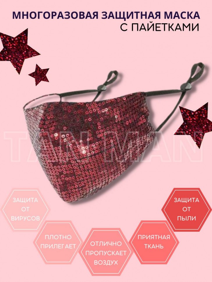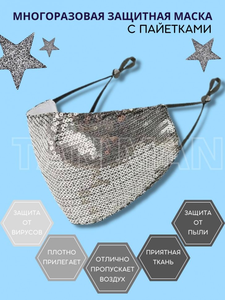 Маска защитная для лица Fashion Mask ЦВЕТНАЯ Пайетки Кружочки многоразовая (ТВ-7)