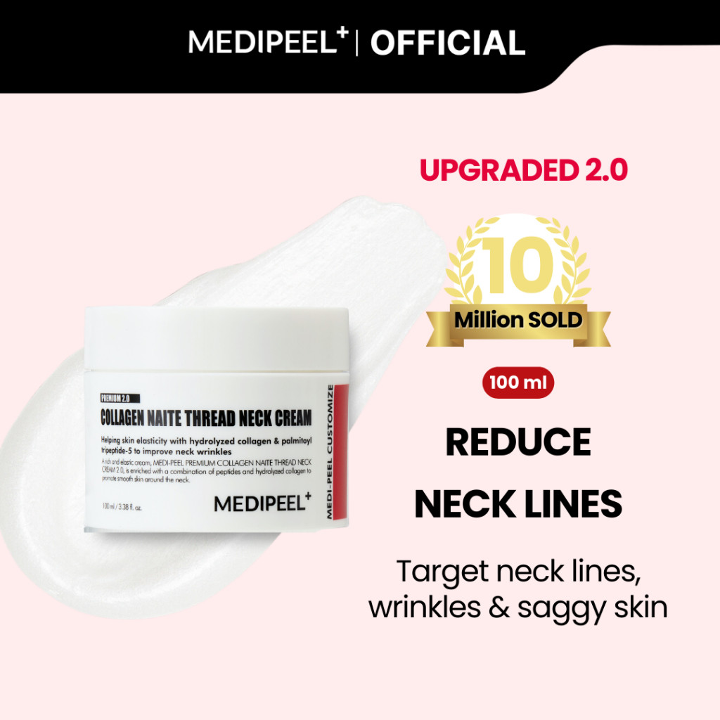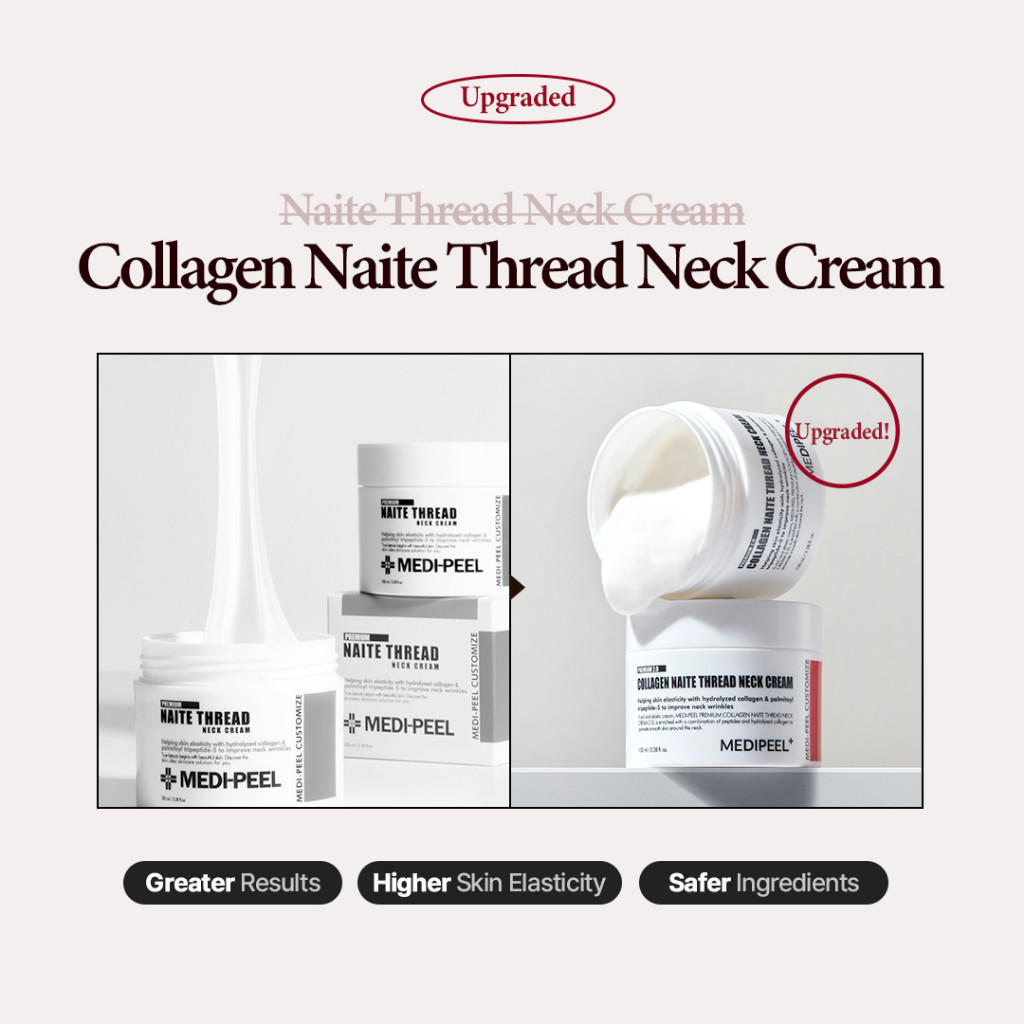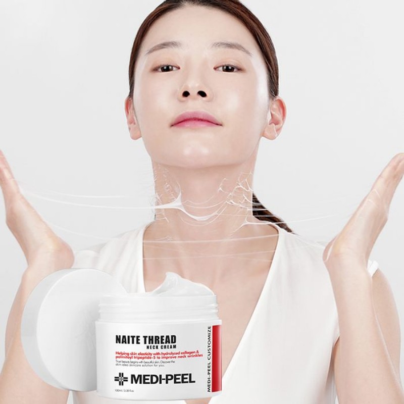 MEDI-PEEL Premium Collagen Naite Thread Neck Cream — обновлённая версия бессменного хита основана на усовершенствованной формуле, которая с двойной эффективностью укрепляет и подтягивает кожу. Эффективность крема в работе по разглаживанию глубоких морщин и заломов (кольца Венеры, морщины сна) доказана дерматологическими испытаниями. А тянущаяся