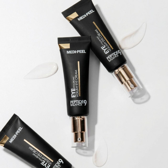 MEDI-PEEL PEPTIDE 9 HYALURONIC VOLUMY EYE CREAM (40ml) - обладает ярко выраженным подтягивающим действием и эффектом лифтинга. Разглаживает мелкие мимические морщинки и сокращает выраженность более глубоких, поддерживает упругость и эластичность кожи, укрепляет тургор и замедляет процессы старения. Крем оказывает укрепляющее действие, разглаживает гусиные лапки и кожные заломы, уменьшает выраженность тёмный кругов под глазами, подтягивает и повышает упругость. Благодаря эффекту лифтинга результат заметен уже после нескольких применений, кожа становится более подтянутой, эластичной, а глубина морщинок сокращается.