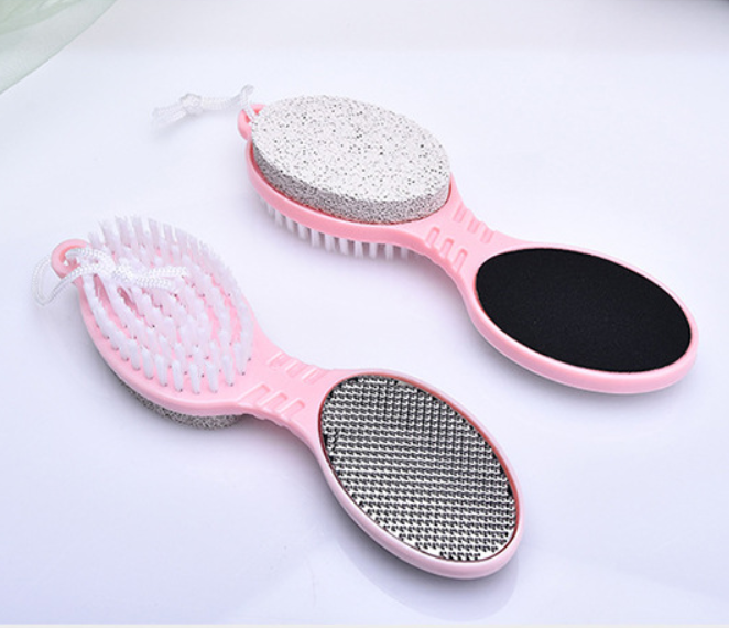 Щетка для пяток 4 в 1 совмещает в себе пемзу, щётку и 2 наждачные тёрки.