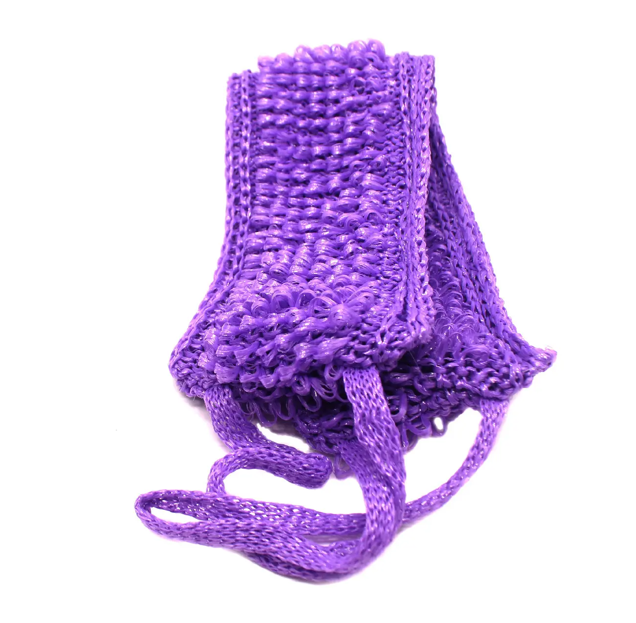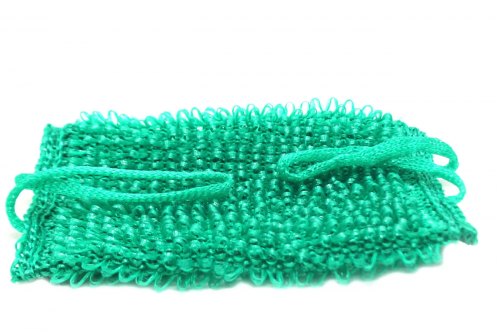 Ребристое волокно мочалки способствует глубокому очищению кожи и активному массажу.