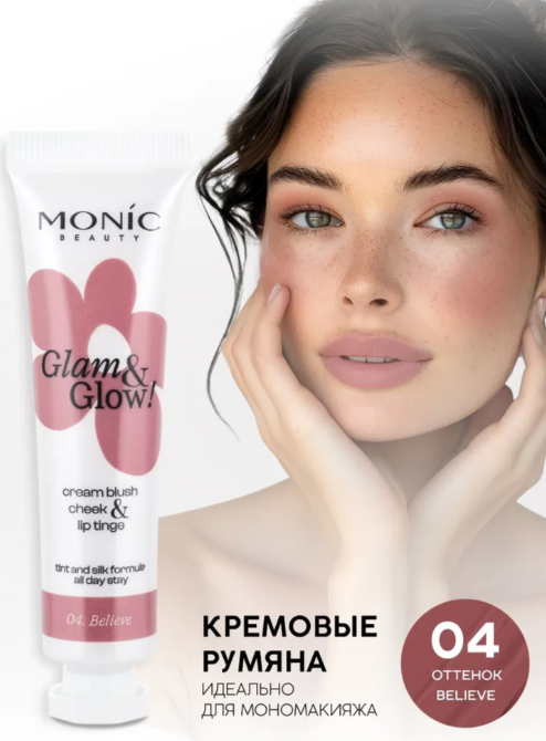 Glam&Glow! Cream Blush от Monic beauty (Моник бьюти) эффективный продукт для создания легкого, естественного румянца. Их нежная кремовая текстура обеспечивает легкое нанесение и растушевку, придавая коже свежий и здоровый вид. Формула румян, обогащенная витамином Е, не только обеспечивает стойкий цвет в течение дня, но и оказывает ухаживающее действие, поддерживая увлажненность и эластичность кожи. Glow Up! Cream Blush поможет создать деликатный и утонченный образ.
