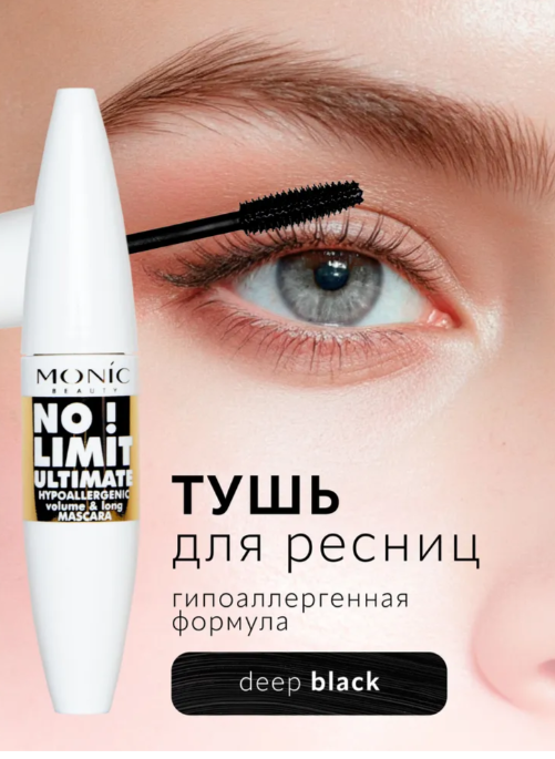 Тушь для ресниц Monic beauty(Моник Бьюти) No Limit! Ultimate – это идеальное решение для создания выразительного и соблазнительного взгляда. Специально разработанная формула не только придает ресницам насыщенный объем, но и приподнимает их, обеспечивая естественное и стойкое подкручивание. В результате ресницы выглядят пышными, объемными и невероятно привлекательными. Удобная щеточка обеспечивает идеальное прокрашивание, равномерное распределение туши и точное разделение каждой реснички. Благодаря уникальному дизайну щеточки, вы сможете легко расчесывать ресницы, предотвращая их склеивание и обеспечивая максимальный эффект объема и подкручивания. Гипоаллергенная формула туши разработана с учетом потребностей самых чувствительных глаз. Она мягко ложится на ресницы, не вызывая раздражения и обеспечивая комфортное ношение в течение всего дня.