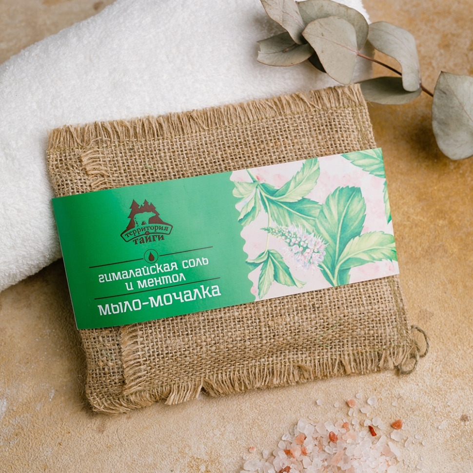 Мочалка льняная с мылом «Гималайская соль и ментол»