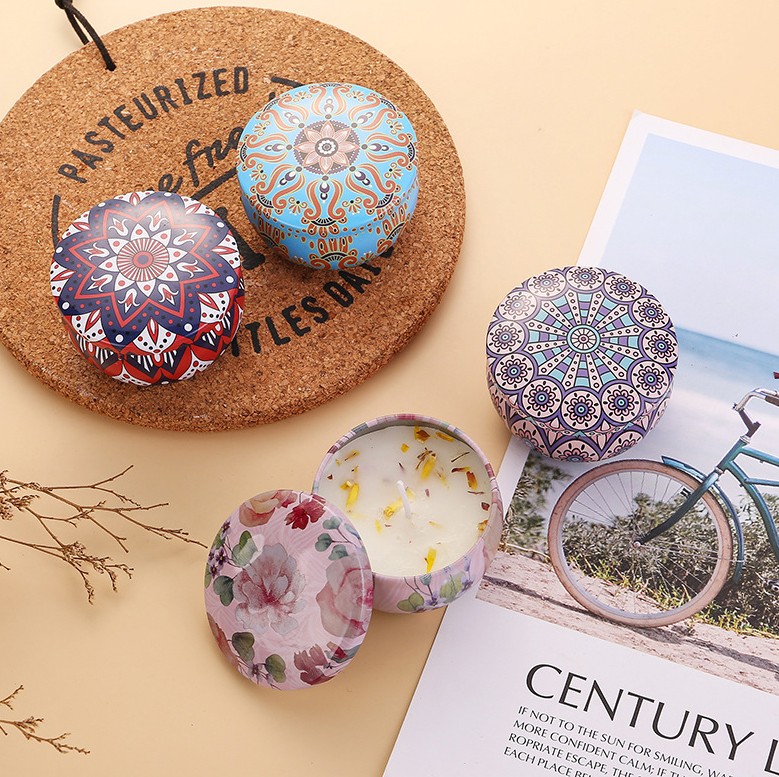 Ароматерапевтические свечи изготовлены из..показать натурального соевого воска с добавлением масел и хлопчатобумажной нити.Портативная жестяная банка для хранения свечей с крышкой изготовлена из красивого толстого металла. После того, как ваша свеча будет полностью использована, эти красивые жестяные банки можно использовать в качестве декоративного контейнера для хранения.