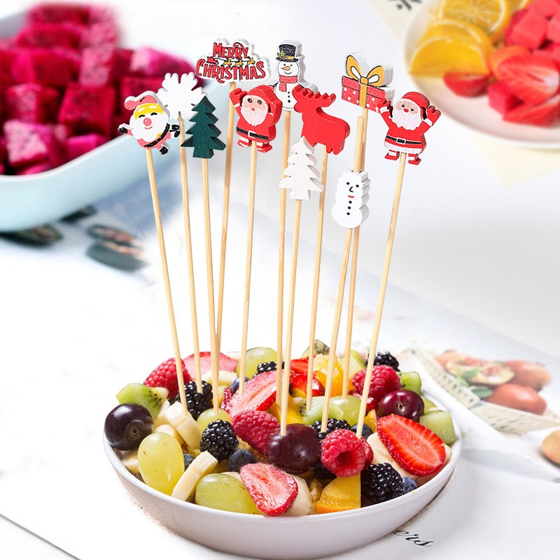 вогодние шедевры с очаровательными бамбуковыми шпажками «Новогодний микс»! Стильный яркий декор создает мгновенное праздничное настроение!Просто добавьте новогодние шпажки в сервировку, и ваш стол заиграет новогодними красками!