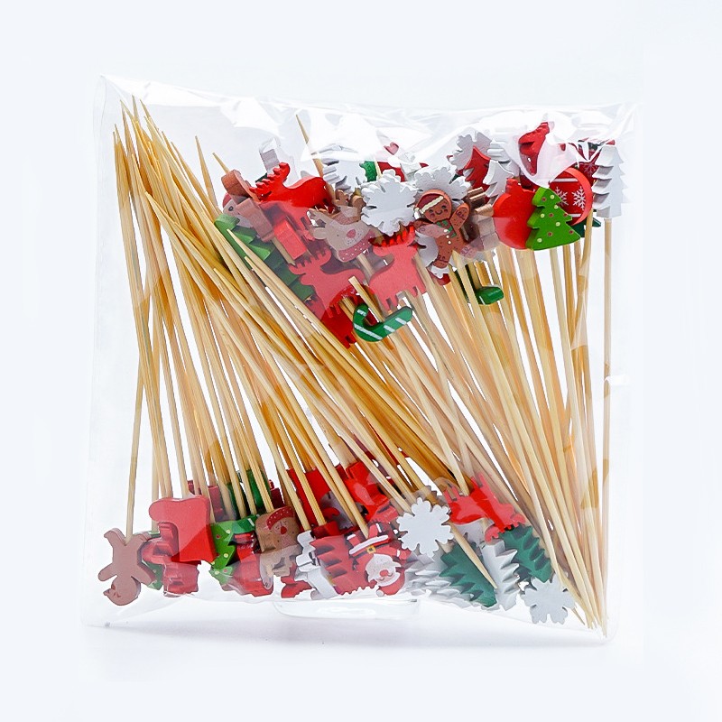 Набор бамбуковых шпажек для канапе "Новогодний микс" 100 штук по 12 см.