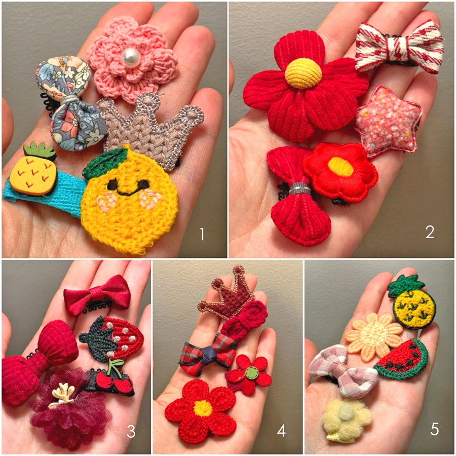 Набор детских тканевых заколок 5 штук.