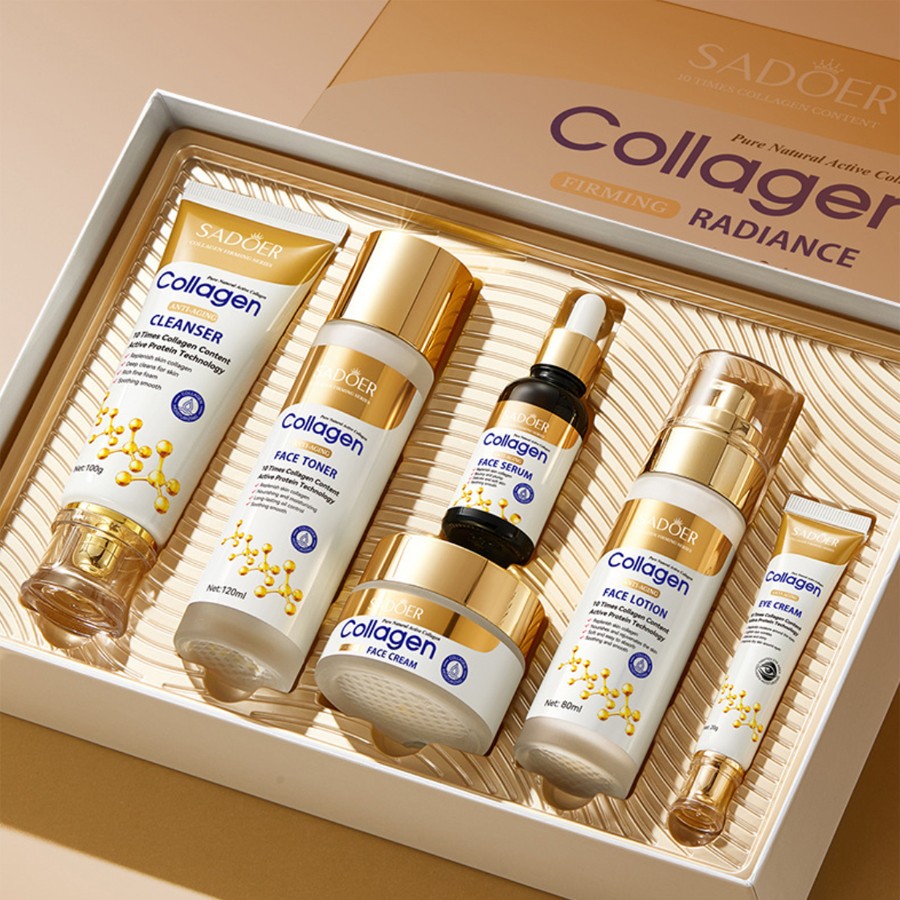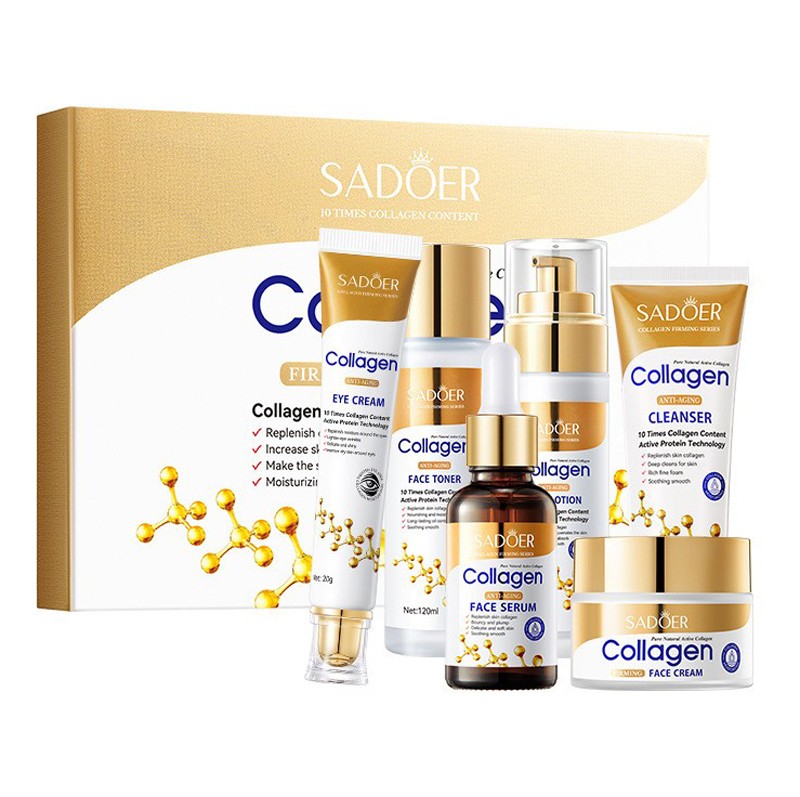 Подарочный набор для лица с коллаген..показатьом, ниацинамидом и олигопептидом Sadoer - это полноценный набор, который обеспечит правильный многоступенчатый уход за кожей, поможет улучшить состояние вашего лица, увлажнить кожу и сделать её мягкой, гладкой и эластичной. Кожа приобретает здоровый, сияющий вид.Средства обеспечивают длительное увлажнение, разглаживают морщины, сокращая их количество и глубину, возвращают коже упругость и эластичность.Препятствуют образованию рубцов и шрамов после воспалений.