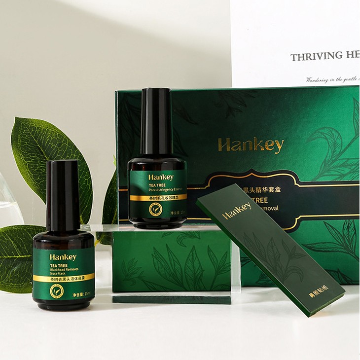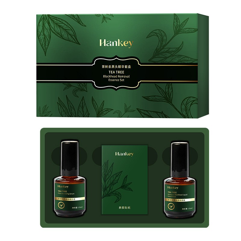Набор для удаления черных точек и сужения пор на носу с чайным деревом Hankey, 2 сыворотки + 50 полосок.