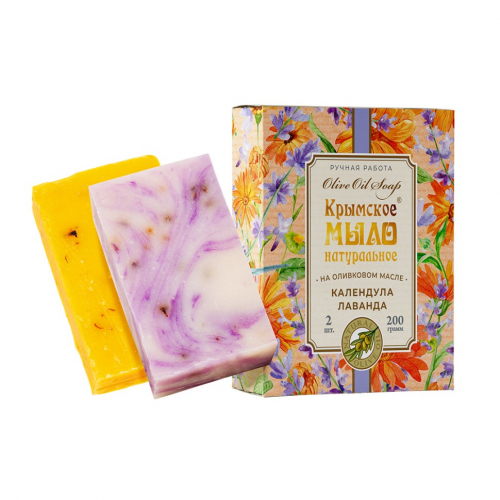 Набор Крымское мыло натуральное на оливковом масле КАЛЕНДУЛА И ЛАВАНДА МН, 200г