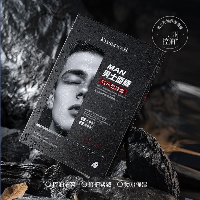 Набор мужских освежающих и увлажняющих тканевых масок для лица для контроля сальных желез KISSMWAH Mens oil control strong refreshing moisturizing facial mask, 5*25мл