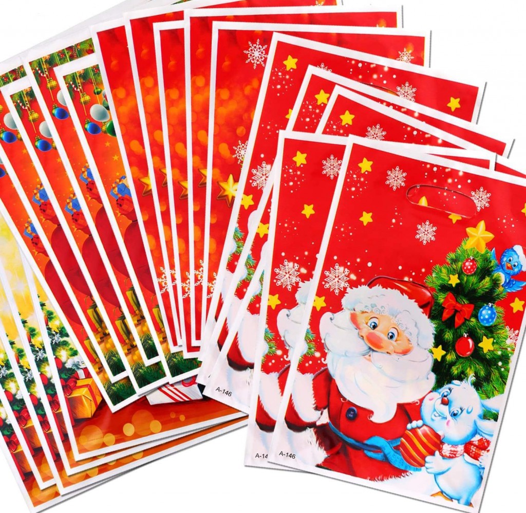 Набор пакетов подарочных новогодних 10 штук 25*17 см. ДЕД МОРОЗ