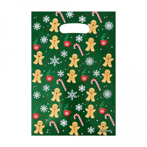 Подарочный полиэтиленовый пакет с ярким красочным новогодним оформлением.
