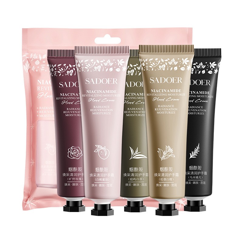 Набор парфюмированных кремов для рук с нацинамидом SADOER (Коллекция 2: Кедр, Роза, Ваниль, Чай, Персик)