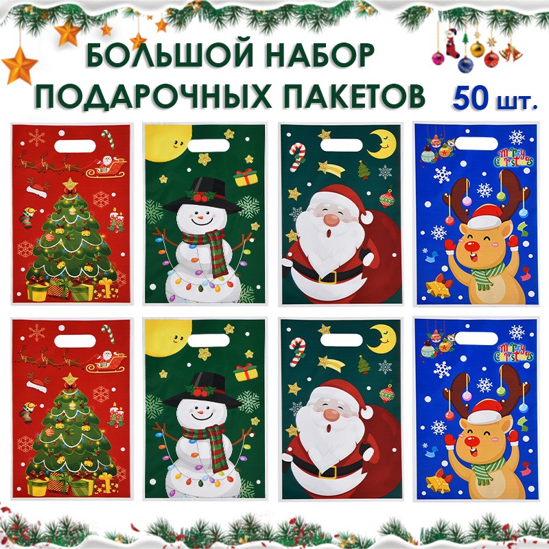 Набор подарочных пакетов 50 штук 25*16 см. Микс рисунков