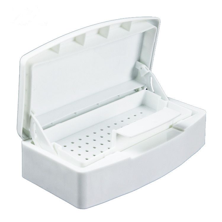 Контейнер предназначен для качественной дезинфекции и химической обработки приборов и инструментов, используемых для маникюра. Материалом для бокса послужил прочный пластик, устойчивый к негативному воздействию химических веществ.