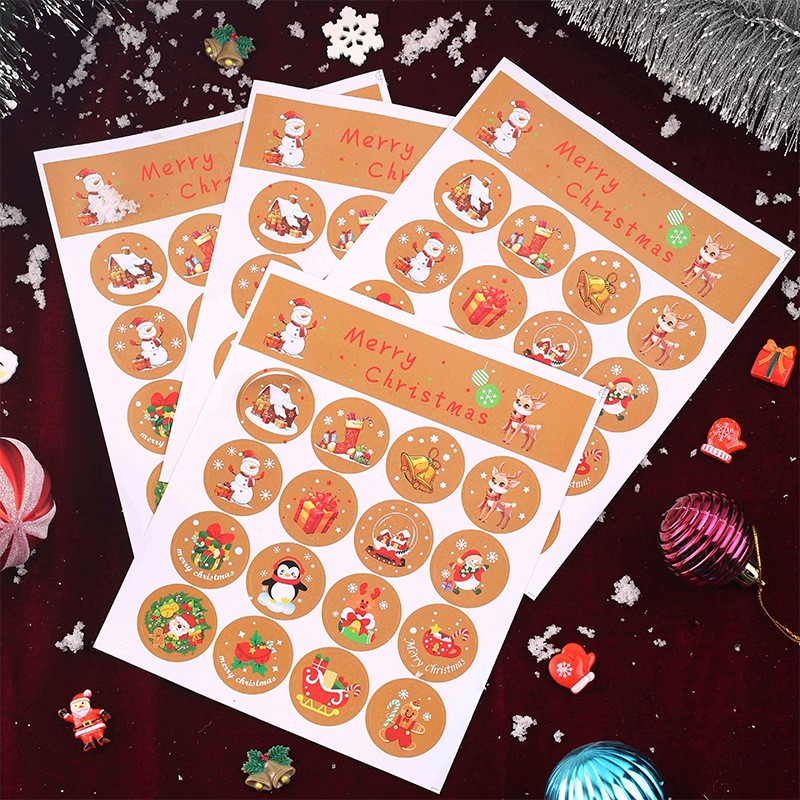 Наклейки новогодние круглые 1 лист 16 шт. Диаметр 3 см. СВЕТЛО-КОРИЧНЕВЫЕ