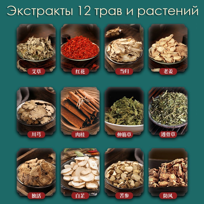 Состав: Полынь, Сафлор, корень Дягиля, Имбирь, корень Чуаньсюн, Корица, Смилакс, корень Пиона, Дягиль даурский, Софора желтоватая, соль для ванн, силера.Противопоказания: Открытые раны, Индивидуальная непереносимость компонентов, Беременность.х трав - очень эффективный способ профилактики таких проблем со здоровьем, как: менструальные боли - значительно уменьшаются уже через 4 недели регулярных процедур, артрит и ревматизм (заболевание суставов), тревожное состояние, бессонница, депрессия, грибковые поражения стоп, потливость ног и неприятный запах от ног.
