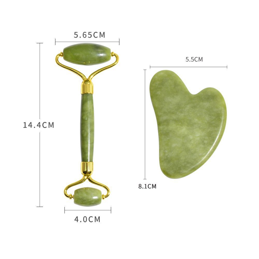 Нефритовый набор для массажа Гуаша (Ролик ГЛАДКИЙ + скребок)